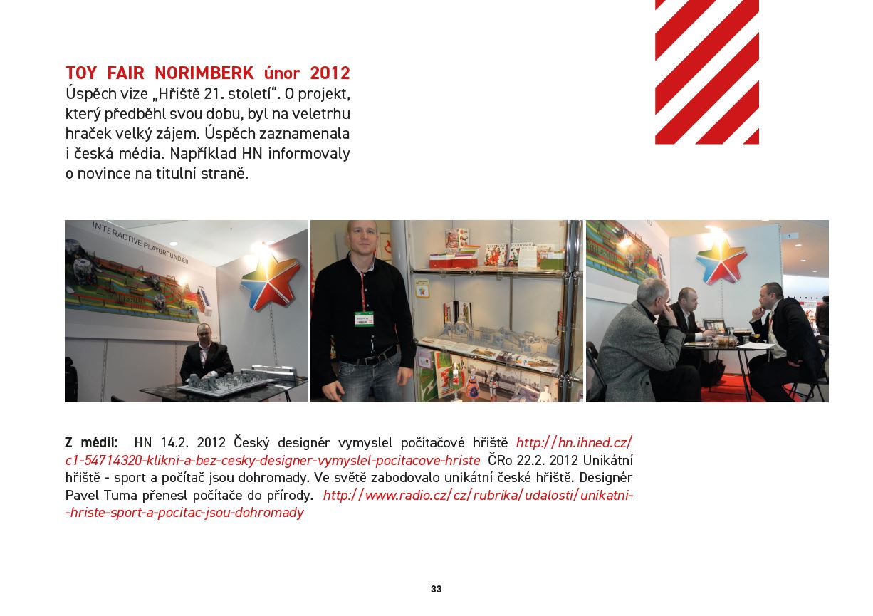 Zkrátka: hračky a techniku, kvůli kterým děti zůstávají doma, nesportují a tloustnou, byly přemístěny do zelených parků. Typickými uživateli Interactive Playground.eu jsou dopoledne školy (učitel dějepisu propojí své aktivity s tělocvikáři a naopak), odpoledne veřejnost - rodiče s dětmi.